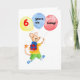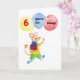 A birthday card for a 6-year old with a handpainted cheeky mouse, holding a gift and balloons with the words '6 years old today! Inside text is 'Happy Birthday'