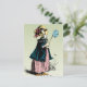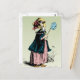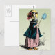 Vintage illustration of a lady duck in long dress and bonnet holding a tipped small umbrella