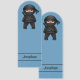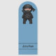 Adorable chubby yet fearsome looking little ninja is dressed in black outfit and carrying katana - traditional Japanese sword.