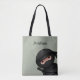 Adorable chubby yet fearsome looking little ninja is dressed in black outfit and carrying katana - traditional Japanese sword.