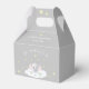 Send guests off with a sweet favor box after your Little Peanut Baby Shower. This modern light grey watercolor elephant sitting on soft clouds and surrounded by twinkling stars is sure to send a heartfelt thank you. Personalize the text that reads, a little something from the mommy-to-be. Coordinating gender neutral baby shower party decor, tableware and invitations in the shop.