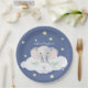 Add a personal touch to your baby shower party tableware with these custom paper plates. Perfect for honoring the Mommy to be with a Little Peanut theme baby shower. The watercolor elephant, twinkling lights and soft blue background make the perfect addition to any baby boy shower. Coordinating elephant baby shower party decor, invitations and tableware in the shop.