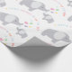 Colorful baby gift wrapping paper featuring adorable illustrated elephants with color modern letters and hearts and says "A Little peanut is on the way"