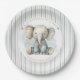 Little Peanut Elephant Blue Striped Baby Shower Paper Plates
