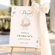 Welcome your guests with elegance and charm using this Little Pearl Seashell Baby Shower Welcome Sign. Featuring a beige sand-inspired background, adorned with gold starfish and pretty pearls, this design captures the beauty of the ocean. The editable text allows for easy customization to fit your event's details. Perfect for an ocean or beach-themed baby shower, this sign will set a warm, inviting tone for your celebration!