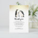 A cute thank-you card with a thoughtful message: "The closet was empty, our baby's belongings were few but that all has changed because of you! We're sending you this message with a little thought: our little one will soon be here to use the gift you brought! Thank you for being a part of our baby shower." This can be changed to the text of your choice. Your names appear at the bottom. Above, "thank you" is written in modern script lettering with a hand-painted watercolor illustration of a penguin family. At the top, there is faux gold confetti. These cards reverse to a gender-neutral gray color.