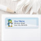 Little penguin walking on snow label