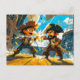 Little Pirate Battling Another Pirate on a Ship Postcard