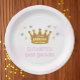 A little princess is on the way! Girl baby shower with gold crown and silver and gold stars with dreamy pink watercolor background