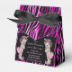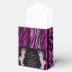 Zebra animal patterns Twins Baby Shower favor boxes. Pink personalized custom vintage Princess twins baby shower thank you party favour box for baby showers for twin girls. Elegant, classy vintage princess favor box for baby showers with a cool, funky hot pink and black grunge zebra animal stripes pattern box and beautiful vintage illustrations of cute and adorable baby girls with stylish pink Princess crowns, sweet bunny rabbit slippers, pink diapers with ruffles and pink bows in their hair. With personalisable, fully customizable text. Two Little Princesses are on their way! Thank you for sharing in my day. Name of mommy to be and date. Chic, groovy, modern, trendy, glamorous, girly, fun, fashionable personalised boxes for your guests' shower favors for twin girl baby showers. If you need any assistance customizing your product please contact me through my store and I will be happy to help.