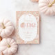 One cute pumpkin! Floral pumpkin and bow Themed 1st Birthday Invitation featuring peach background with daisies, pumpkin and cute pink bow.
