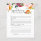 Little pumpkin baby predictions card. Burgundy floral predictions for the baby card.
