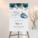 Rustic and boho fall baby shower welcome sign featuring watercolor illustration of blue pumpkins and flowers. The text says "a little pumpkin is on the way."