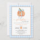 Little Pumpkin Blue Gingham Fall Baby Shower Invitation