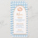 Little Pumpkin Boho Blue Gingham Birthday Menu Card