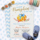 Little Pumpkin Boy Gold Blue Fall Baby Shower Invitation