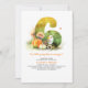 Little pumpkin birthday invitations with orange and white pumpkins, colorful fall leaves, sunflowers, wheat and berries