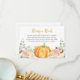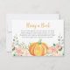 The design features an orange pumpkin with blush pink and orange flowers. It is perfect for a fall-themed baby shower.