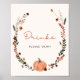 Celebrate the arrival of your little pumpkin with this cute fall themed baby shower drinks sign with a charming wildflower design featuring a cute little pumpkin, tiny wildflowers, twigs and leaves and a matching pattern on the reverse side. This sign perfectly captures the warmth and coziness of the autumn season. The warm colors and playful font will surely set the tone for a memorable and festive celebration.