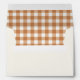 This customizable envelope features a solid cream exterior with an orange plaid pattern on the inside. Find custom text fields for a return address on the outer flap.