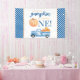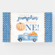 Our little pumpkin first birthday banner with watercolor pumpkin and blue plaid and blue truck.