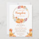 Orange Peach Floral Pumpkin Wreath A little pumpkin is on the way fall baby shower Invitation