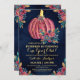 Little Pumpkin Navy Floral Watercolor 1st Birthday Invitation