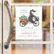 Welcome guests to your "Little Pumpkin on the way" themed baby shower with our personalized Welcome Window Cling. Featuring the charming phrase "A little pumpkin is on the way," and adorable hand-drawn illustration of a badger pulling a large blue pumpkin cart behind its colorful bike, this cling adds a whimsical touch to your front door window or entry mirror. Customize the cling with the mom-to-be's name for a personal touch that sets the tone for a heartwarming celebration. Whether placed on a window, mirror, or any smooth surface, this cling effortlessly enhances your baby shower decor. Create a warm and inviting atmosphere as you celebrate the imminent arrival of your little lovebug.