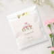 A cute, sweet and stylish personalized thank you favor bag for a girl baby 1st birthday party, with a pink pumpkin theme, perfect for Halloween or the fall, the harvest etc. It features a watercolor painting of a pink pumpkin with a pink bow, and pink roses, as well as a few fall leaves.