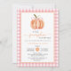 Little Pumpkin Pink Gingham Fall Baby Shower Invitation