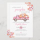 This stylish baby shower invitation features rustic autumn, fall leaves and a cute pink truck full of pumpkins. With your registry QR code and event details on the reverse. Designed by Thisisnotme©