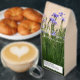 Treat your party, hotel guests, or event guests to a flavorful cup of roasted coffee with this bag of coffee that features a photo image of little, purple Irises printed on the outside box. Side panel background color is cream color. Text reads, "Thank you for being our guest" in white, stylized script. You may customize your bag of coffee to add or remove text for your particular gifting occasion. Select your coffee roast style, blend, and grind style.