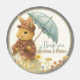 Rustic-style baby shower collection, decorated with soft colors and a vintage watercolor image of a cute little bunny with a parasol, in a style similar to Beatrix Potter's Peter Rabbit.