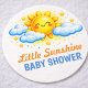 Brighten your celebration with this Little Sunshine baby shower design featuring a smiling sun, soft blue clouds, and sparkling stars. The cheerful yellow and sky blue palette creates a warm, joyful vibe that perfectly matches a sunshine baby shower theme. Ideal for adding a cute and cohesive touch to your party décor and creating a memorable, happy atmosphere for your special day.