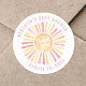 This round sticker design features a vibrant sun at the center, with the cheerful phrase "Thank You!" placed right on top of the sun. The sun's rays burst out in shades of yellow, orange, pink, and red, bringing warmth and joy to your celebration.