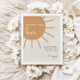 Our boho baby little ray of sunshine design features playful typography on an ivory and buff orange color palette. This design is simply adorable for a modern minimal event in celebration of your little ray of sunshine. Find matching items to pair with your baby shower get together in our shop!