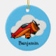 Little Red Airplane Design Ceramic Ornament with customizable background color and personalization.