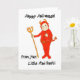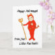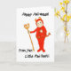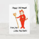 A Halloween Greeting Card with a child dressed in a red devil's costume, from a design handpainted in watercolours by Judy Adamson. The text says, 'Happy Halloween! From your Little Red Devil!' Blank inside for your own message.