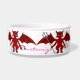 I absolutely love this product! I was a little concerned prior to buying it, but I was blown away by the quality of the item. The bowl is sturdy and arrived clean without any damage. The printing was crisp and clean and looks Better than I hoped! My dogs immediately knew these were for them and get very excited to pose with their new bowls! Definitely recommend and will purchase more in the future! The printing is crisp and well done. It looks absolutely beautiful on the bowl, and I can tell that it’s going to hold up well over time.