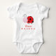 Personalized Bodysuit featuring a red ladybug with beautiful red flowers and pink stripes background. Cute and fun design for special for girls. Customizable name gift.