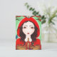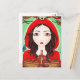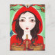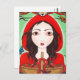 My very own original acrylic painting of Little Red Riding Hood is used here to create this art postcard. She is pictured with her little basket filled with strawberries and apples and a red ribbon that is tangled in the surrounding wooded frame. Butterflies flutter by and the wolf sits in wait at the top of the frame… The postcard features a cropped image on the front and smaller picture of the full painting on the back.