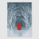 Little Red Riding Hood on a snowy winter walk through the woods. Can You see the Big Bad Wolf howling in the distance? A grungy version of a negative watercolor painting.