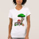 I love wearing a reprint of my colored pencil drawing of Annie the cat looking over the hillside. My illustration is based on a picture I took of Annie the manx cat. The printing turned out lovely, and the shirt is soft and thick. The American Apparel shirt run on the smaller size, so I always order a large or extra large.