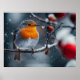 Little robin bird sitting on a branch at winter poster