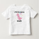Little Sis-o-saurus written in fun font typeface with a baby pink dinosaur illustration. The child's name can be easily changed on the order page. One word of caution. Since this t-shirt style doesn't offer a white color underbase (for some unknown reason) we don't recommend using another shirt color because the image won't look great. But it sure looks adorable on this color.