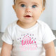 Celebrate your newest family member with this adorable “Little Sister” baby bodysuit! Designed with soft pastel pink text, a princess crown, and sweet stars, this cute baby outfit is perfect for birth announcements, new baby photo shoots, sibling reveal photos, or baby shower gifts.