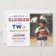 Little Slugger Boy 2nd Birthday Baseball Photo Invitation