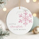 Celebrate the arrival of your baby girl with this elegant winter-themed ornament. Featuring a delicate, watercolor snowflake in cute pink hues, this charming design perfectly captures the essence of a winter wonderland.