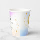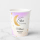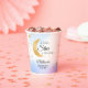Celebrate a whimsical celestial baby shower with these charming paper cups. The design features a gold crescent moon and scattered stars set against a soft watercolor blue and purple wash. These are perfect for serving hot or cold beverages to guests with a little star is brewing or twinkle twinkle theme baby shower.