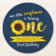 Little Sunflower 1st Birthday Party Round Paper Coaster